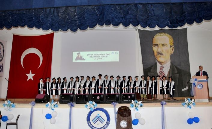 İlk mezunlarını veren Çankırı Karatekin Üniversitesi Sağlı Bilimleri Fakültesi Çocuk Gelişimi Bölümü öğrencileri için mezuniyet töreni düzenlendi. Sağlı Bilimleri Fakültesi Spor Salonunda gerçekleşen törene Çankırı Karatekin Üniversitesi Rektörü Prof. Dr. Harun Çiftçi, Rektör Yardımcıları Prof. Dr. Mehmet Erdem, Prof. Dr. Hüseyin Odabaş, Sağlık Bilimleri Fakültesi Dekanı Prof. Dr. Özcan Özkan, ÇAKÜ Genel Sekreteri Sadık Yılmaz, İL Milli Eğitim Müdürü Muammer Öztürk, akademisyenler, veliler ve öğrenciler katıldı. Saygı duruşu ve İstiklal Marşının okunması ile başlayan törende daha sonra fakülte tanıtım videoları gösterimi yapıldı. Sonrasında 2021-2022 Eğitim-Öğretim Yılı dönem birincisi Dilek Maden mezun arkadaşları adına bir teşekkür konuşması yaptı.
