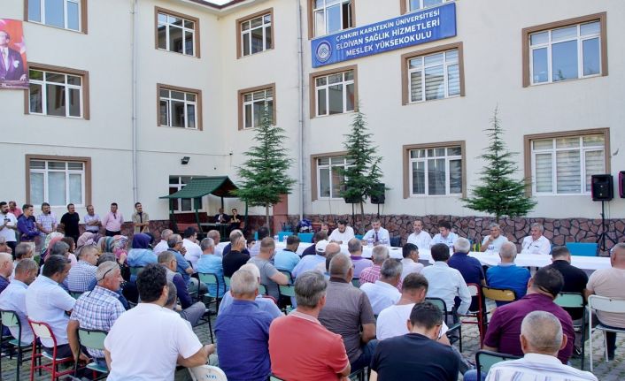 Çankırı Karatekin Üniversitesi (ÇAKÜ) Rektörü Prof. Dr. Harun Çiftçi, başta Eldivan Sağlık Hizmetleri Meslek Yüksekokulu olmak üzere, üniversitenin potansiyeli ile ilçelerin imkanlarının değerlendirilmesi amacıyla, meslek yüksekokullarının yeniden yapılandırılması hususunda, açıklamalarda bulunmak üzere Eldivan’da vatandaşlarla bir araya geldi. Eldivan Sağlık Hizmetleri Meslek Yüksekokulu bahçesinde gerçekleşen ‘üniversite halk buluşması’nda Çankırı Milletvekili Salim Çivitcioğlu, Eldivan Belediye Başkanı Mustafa Lafcı, ÇAKÜ Genel Sekreteri Sadık Yılmaz, Eldivan Sağlık Hizmetleri MYO müdürü Öğr. Gör. Bedri Eminsoy ve ilçe yöneticileri de yer aldı.