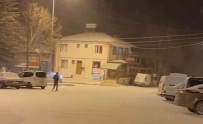 Çankırı’nın Yapraklı ilçesinde hava sıcaklığının sıfırın altına düşmesiyle kar yağışı başladı. Etkili olan kar yağışının ardından ilçe merkezi kısa sürede beyaz örtüyle kaplandı. Kar yağışının sabah saatlerine kadar ara ara devam etmesi bekleniyor.