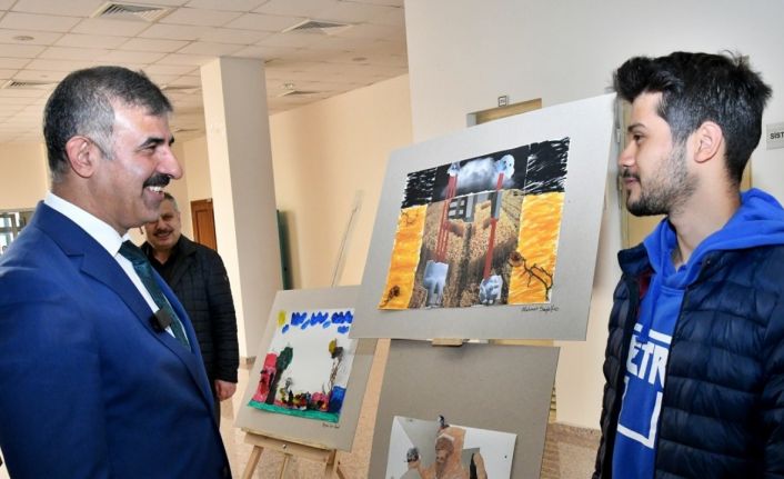 Çankırı’da düzenlenen sergide, depremzede öğrencilerin resim eserleri sanatseverlerle buluştu.