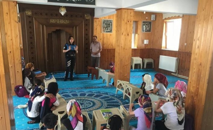 Çankırı’da polis ekipleri, Kur’an kurslarında eğitim gören çocukları ziyaret ederek boğulmalara karşı bilgilendi.