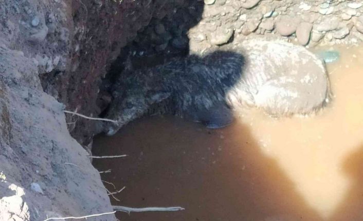 Su dolu çukurda mahsur kalan kurt ve köpeği ekipler kurtardı