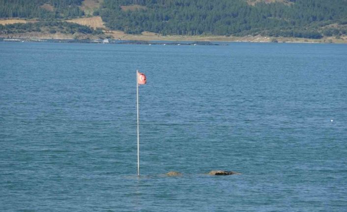 Almus’ta bu yıl yağışların çok olmasıyla birlikte su seviyesi yükseldi. Gölde geçtiğimiz yıllarda tarımsal sulama ve elektrik üretimi nedeniyle sular çekilmişti. Suların çekilmesi ile kıyı 150 metre uzamış ve su altındaki kayalıklar ortaya çıkmıştı. Şimdi ise geçtiğimiz yıl insanların yürüyerek gidebildikleri Malkayası olarak bilenen kayalık alan yeniden sular atında kaldı. Sular altında kalan kayalıktan geriye ise en üst kısmında dikili olan Türk bayrağı kaldı. İlk bakışta gölün ortasına yakın bölümde sadece Türk bayrağının dalgalandığı direği görenler şaşkınlığını gizleyemiyor. Baraj kenarından manzarayı izleyenler, bu manzarayı görüntülemeyi ihmal etmiyor.