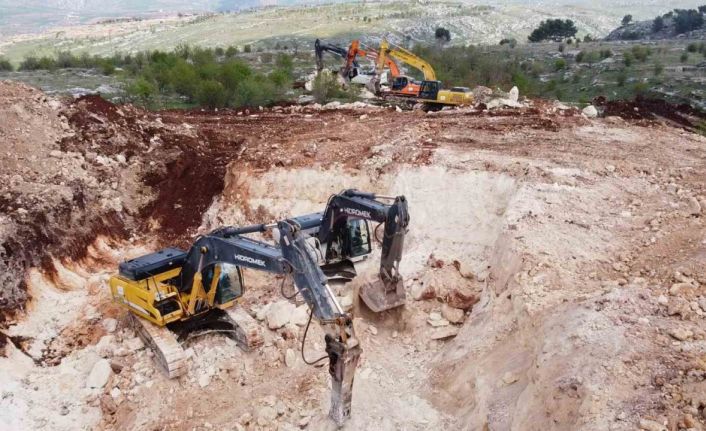 Adıyaman’da 5 milyon metrekare alanda 25 bin konutun yapılacağı Karadağ’da iş makineleri çalışmaya başladı. İş makineleri, zemini tamamen taş olan bölgede temel yeri açma çalışmasını sürdürüyor.