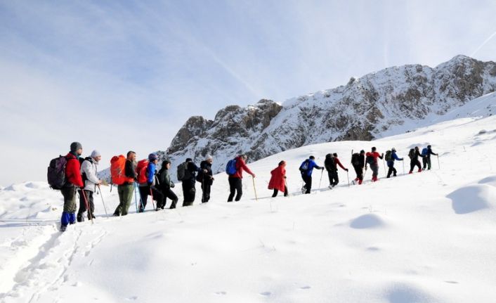 Tunceli’de 30 dağcı, 2 bin 650 metre yüksekliğinde bulunan Meydan Dağı’na tırmanış gerçekleştirdi. Zirveye ulaşmak yaklaşık 6 saat sürdü.