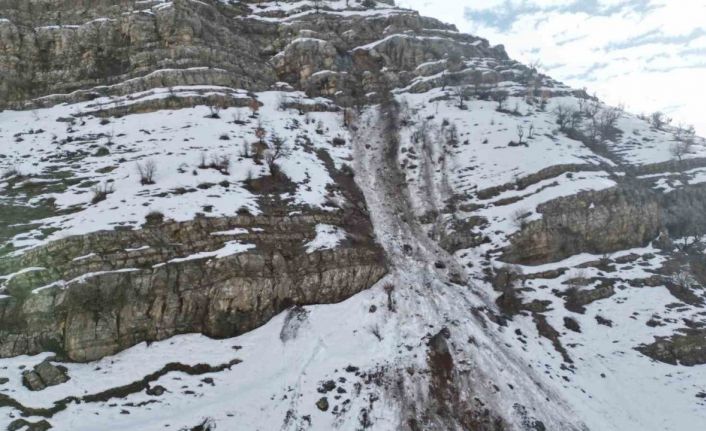 Şırnak’ta dün akşam saatlerinde köye düşen dev kayalar 30 keçiyi telef etmişti. Kayaların düştüğü bölge dron ile görüntülendi.