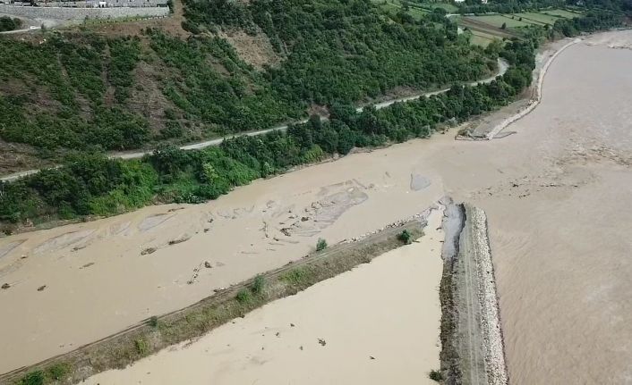 Zonguldak’ta etkili olan kuvvetli yağışla dereler yükseldi, rögarlardan su taştı. 6 köyü birbirine bağlayan yol çöktü