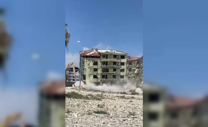 Kahramanmaraş merkezli depremlerde ağır hasar alan Hatay’da mahkeme süreci sona eren binaların yıkım ve enkaz kaldırma çalışmaları aralıksız sürüyor. Defne ilçesi Çekmece Mahallesi’nde bulunan 7 katlı bina, iş makinesi ile kontrollü olarak yıkıldı. Binanın yıkılma anı ise kameralara an be an yansıdı. 7 katlı binanın yıkımı esnasında herhangi bir olumsuzluk yaşanmadı.