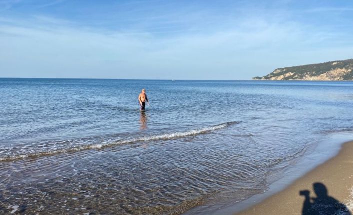 Aralık ortasında denize giren Kurt’u görenler şaşkınlığını gizleyemezken yaşlı adam yaklaşık yarım saat denizde kaldı.