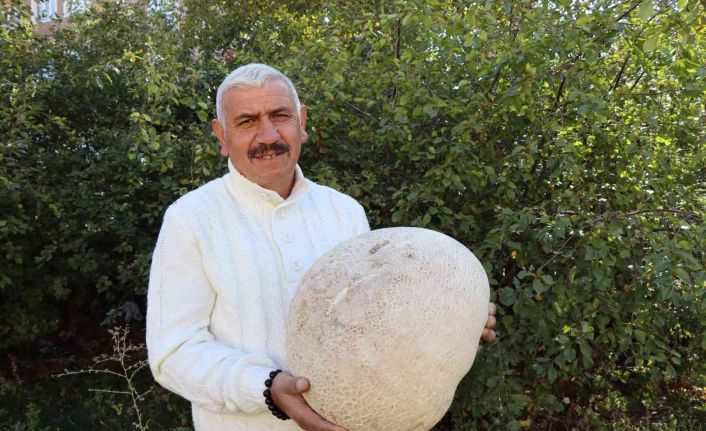 Erzurum’un Oltu ilçesine bağlı Kemerkaya köyünde 8,885 kilogramlık mantar bulan Beycan Onat, ilk gördüğünde mantarı kestane kabağı sandığını söyledi.