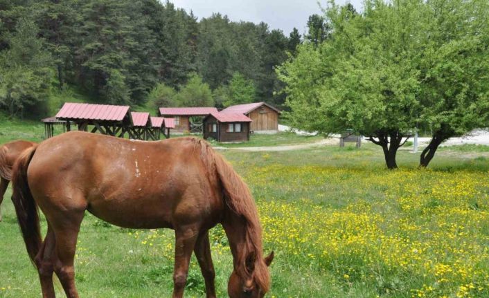 Bolu’nun doğa harikası Abant Gölü Milli Parkı yağmurların ardından rengarenk açan çiçeklerle çiçek bahçesine döndü.