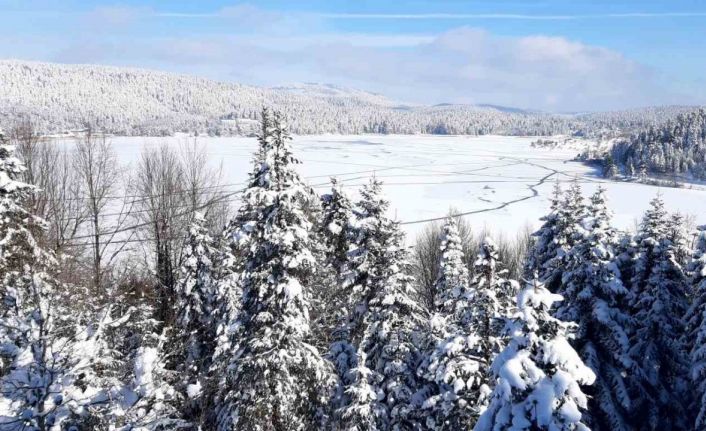 Bölgede zaman zaman etkili olan kar yağışının ardından Abant gölü beyaz örtüyle kaplanırken, çam ve köknar ağaçları muhteşem bir görüntü oluşturdu.