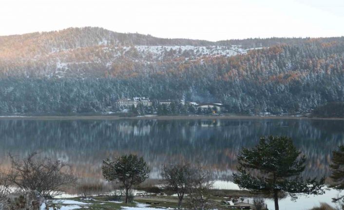 Abant Gölü’nün kıyıları buz tuttu, muhteşem manzaralara sahne oldu