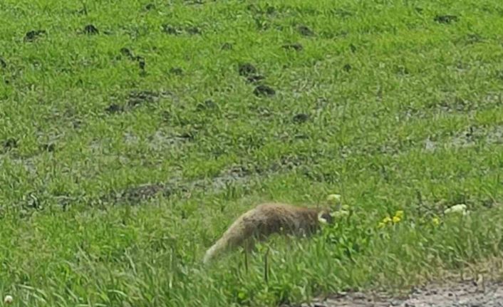 Çıldır ilçesine bağlı Aşıkşenlik Mahallesi’nde yeşil çayırda avlanırken görüntülenen tilki, bir yandan da çevreyi gözlemledi. Meraklı kızıl tilkinin, yazın renkli çayırlarda kır çiçeklerinin arasında avlanma anı cep telefonu kamerasına yansıdı. Kısa süreliğine yola çıkarak ilerleyen tilki, daha sonra yeşillikler arasına dalarak uzaklaşıp gözden kayboldu.