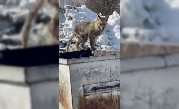 Erzurum’un Palandöken ilçesinde aç kalan tilki çöp konteynerinde yiyecek aradı. Bu anlar cep telefonu ile görüntülendi.