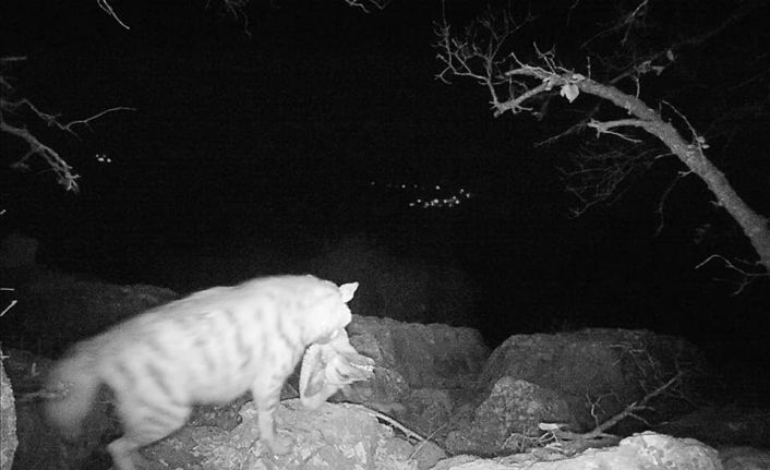 Adıyaman’da nesli tükenme tehlikesiyle karşı karşıya olan çizgili sırtlan, parçaladığı leşlerle birlikte foto kapanlar tarafından görüntülendi.