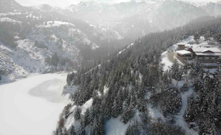 Afyonkarahisar’da yaklaşık 2 haftadan bu yana aralıklarla devam eden kar yağışı sonrası donan Erkmen Baraj Göleti ve çevresinde kar altında kalan ağaçlar adeta bir kış masalı görüntüsü oluşturdu.