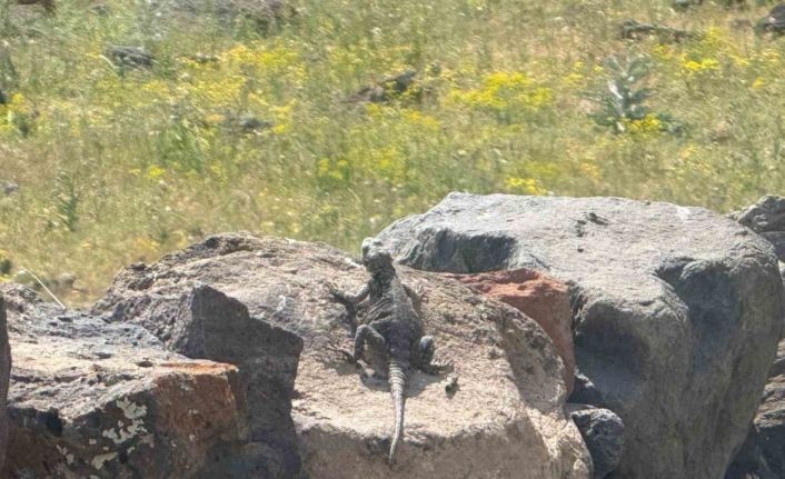 Dünyada yalnızca Kafkasya ve Türkiye’nin Doğu Anadolu Bölgesi’nde görülebilen, doğada nadir rastlanan sürüngen türlerinden biri olan Kafkas keleri (Paralaudakia caucasia), Ağrı Dağı eteklerindeki köylerde kayalık alanlarda görüntülendi.