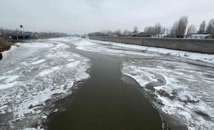 Bir süredir Ağrı’yı etkisi alan dondurucu soğuklar nedeniyle Murat Nehri dondu.