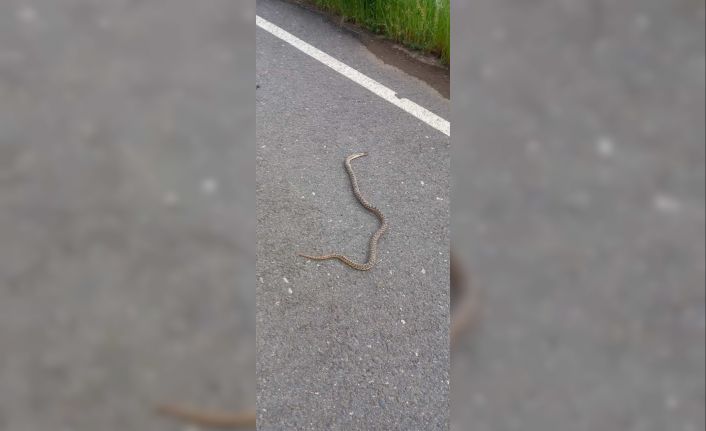 Ağrı’nın merkeze bağlı Küpkıran Mahallesi’nde bulunan vatandaşlar, mahallelerinde bir süredir yılanlara rastlayınca panik oldu. Yolda yürürken yılana rastlayan bir vatandaşın kaydettiği görüntülerde, köpeğin etkisiz hale getirdiği yılanı alıp uzaklaştığını görüldü.