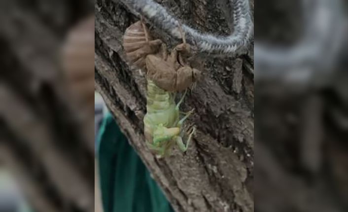 Elazığ’da ağustos böceğinin kabuk değiştirme anı saniye saniye görüntülendi.