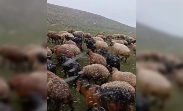 Köyün merasına küçükbaş hayvanları otlatmaya çıkaran çobanlar aniden bastıran kara yakalandı. Karın şiddetlenmesiyle birlikte etraf beyaza bürünürken koyun sürüleri kar altında ilerlemekte güçlük çekti.