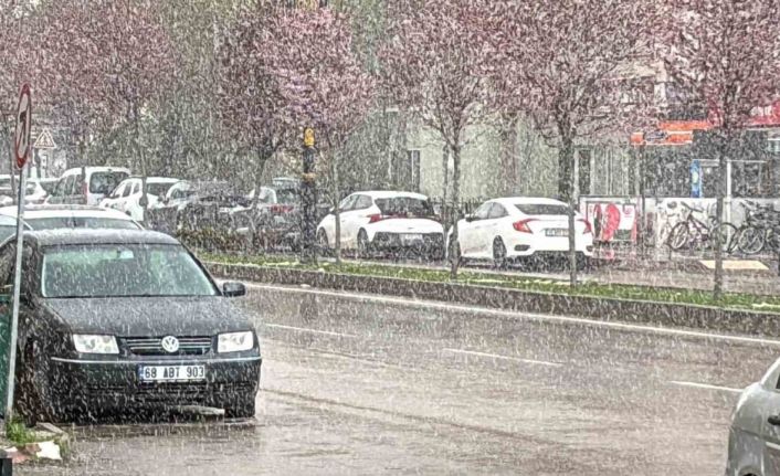 Aksaray’da günlerdir aralıklarla süren yağmur yağışları bugün yerini kar yağışına bıraktı. Şehirde aniden bastıran kar yağışı çiçek açmış ağaçlarla birlikte iki mevsimin güzelliğini bir arada sahneledi.