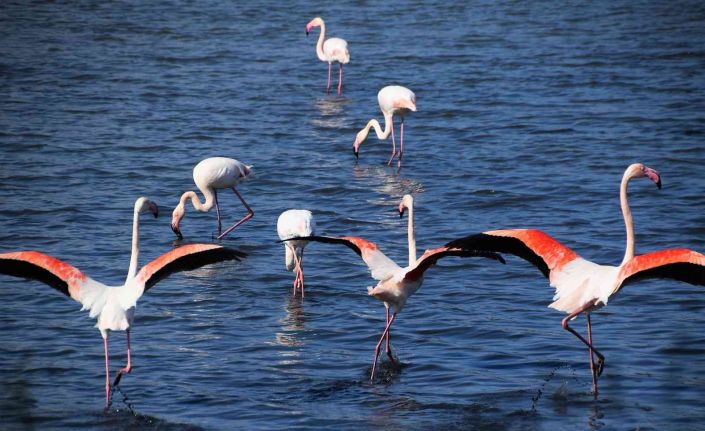 Aliağa’da flamingoların görüntüsü hayran bırakıyor