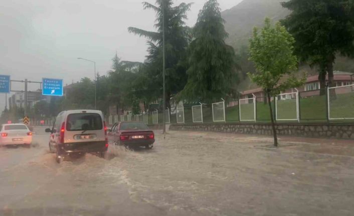 Amasya’da akşam saatlerinde etkili olan sağanak, yolları adeta dereye çevirdi. Sürücüler zor anlar yaşarken, yayalar otobüs duraklarına sığındı.