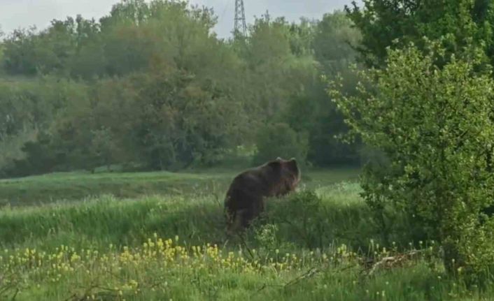 Yolun karşısına geçtikten sonra boş araziye doğru koşarak uzaklaşan ayı, sürücü tarafından cep telefonu kamerasıyla kaydedildi.