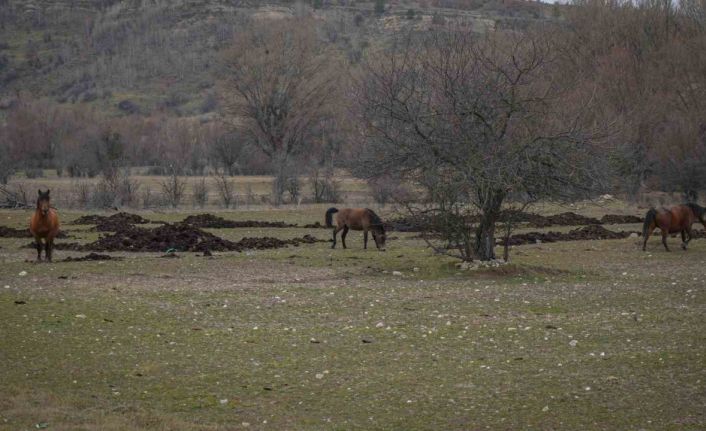 Ankara’da yaban hayatının simgelerinde olan yılkı atları havadan görüntülendi.