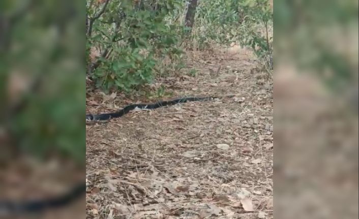 Elazığ’da yavrularının bulunduğu yuvaya girmek isteyen yaklaşık 2 buçuk metrelik yılanın dikkatini dağıtarak yuvadan uzaklaştıran anne kuşun mücadelesi görüntülendi.