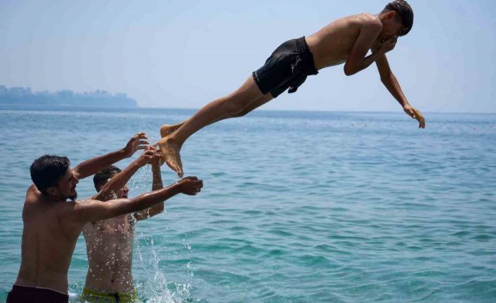 Kurban Bayramı’nın ilk gününde Antalya’da sıcaklık 37 dereceyi buldu. Sahillerde yoğunluk yaşanırken, tatilciler serin sulara koştu.