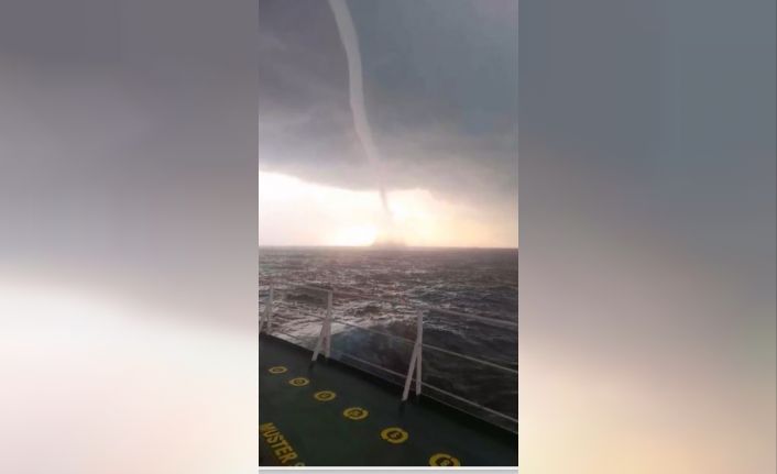 Antalya Körfezi açıklarında denizde oluşan hortum, yakınındaki bir tanker gemisinden görüntülendi. Hortumun uzunluğu ve denizden suyu çektiği anlar cep telefonu kamerasına yansıdı.