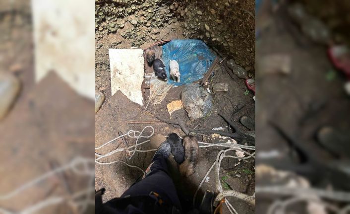Antalya’da kuyuya düşen 7 yavru köpeği itfaiye kurtardı