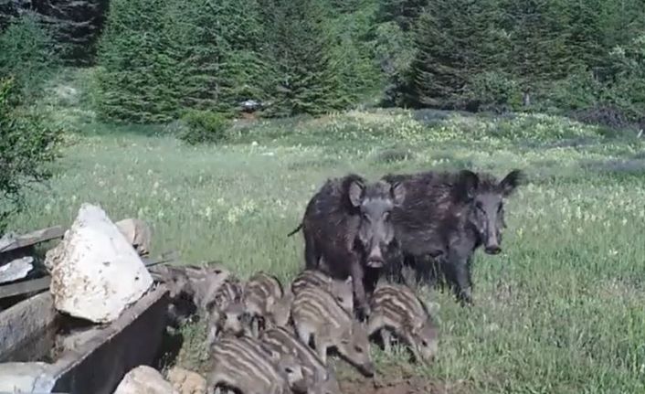 Antalya’da kurt, at, vaşak ve yaban domuzlarının su içme anları fotokapanlara yansıdı.