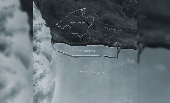 A-76 olarak adlandırılan buzdağı, ilk olarak İngiltere Antarktik Araştırması tarafından tespit edilirken, Maryland merkezli ABD Ulusal Buz Merkezi tarafından da doğrulandı. Dev buzdağının, 3 bin 640 kilometrekare büyüklüğündeki İspanya’nın turistik adası Mayorka’dan (Mallorca) büyük olduğu ifade edildi.