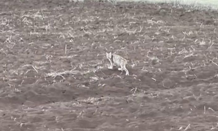 Sivas’ta sürücünün tarlada fark edip görüntülediği yavru vaşak, arazide uzaklaşırken arkasına dönüp bakmasıyla yıllar sonra yeniden gündeme gelen ’sürüsünden ayrılan penguen’ belgeselindeki sahneyi hatırlattı.