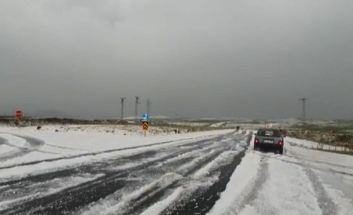 Ardahan’ın Çıldır ilçesi Haziran ayının son günlerinde adeta kışı yeniden yaşadı. Öğle saatlerinde başlayan ceviz büyüklüğündeki dolu yağışı her yeri beyaza bürüdü. Trafikte ilerlemekte güçlük çeken araçlar yollarda kaldı.