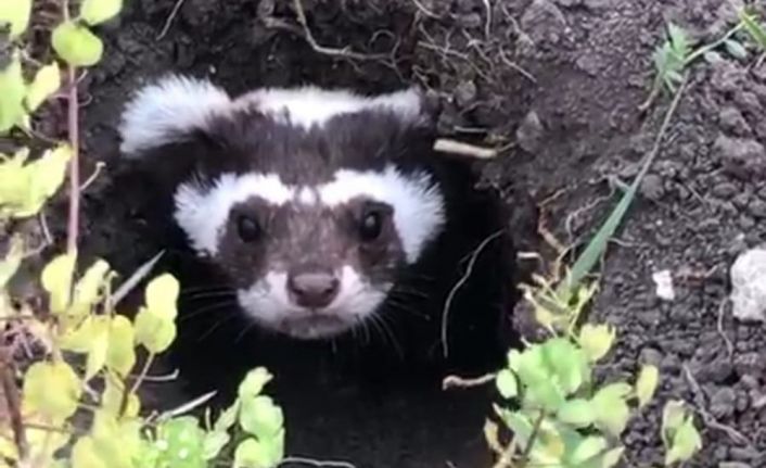 Ardahan’da nesli tükenmekte olan alaca sansar görüldü