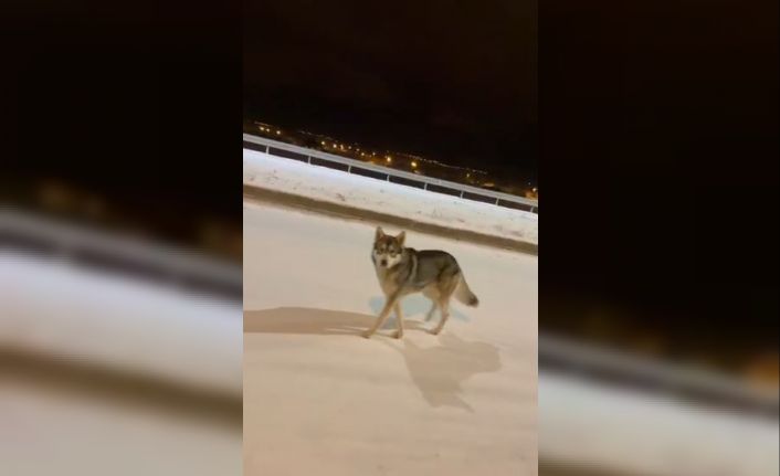 Ardahan’da gece saatlerinde şehir merkezine kadar inen bir kurt, vatandaşlar tarafından cep telefonu kamerasıyla görüntülendi.