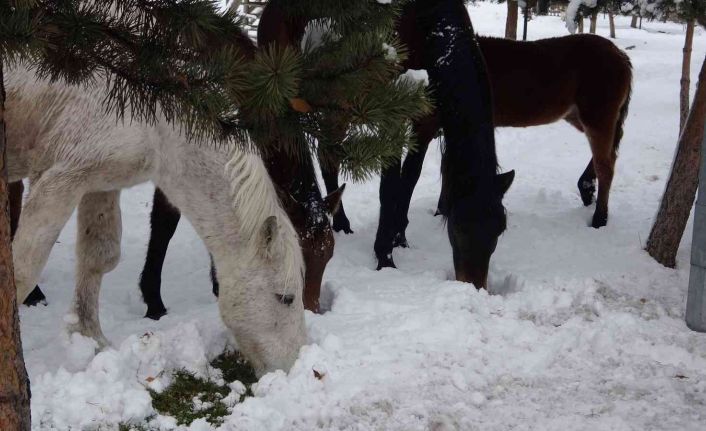 20-30 santimetre kar altında yiyecek arayan atlara sahip çıkılması gerektiğini söyleyen Yılmaz, ’’Bazen buraya gelen bu atları saman, ot ve arpa ile besliyoruz. Ama devamlı alamıyoruz. Çünkü sürekli burada durmuyorlar. Geldikçe biz bu hayvanlara bakıyoruz. Ama yazık günah bu hayvanlara, kar altında yiyecek arıyorlar’’ dedi.