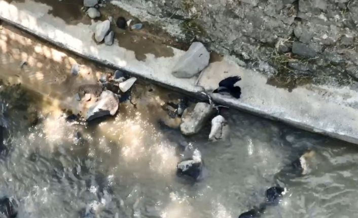 Artvin’de Çoruh Nehri üzerinde, bir karganın suyun içindeki yılana saldırdığı anlar bir vatandaş tarafından cep telefonu kamerasıyla kaydedildi.