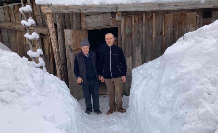 Artvin’in Meşeli köyü sakinleri yoğun kar yağışı sonrası köy içinde bulunan mahalle yolları kapanınca iş makinesi giremediği bölgeleri imece usulü kendileri temizlediler.