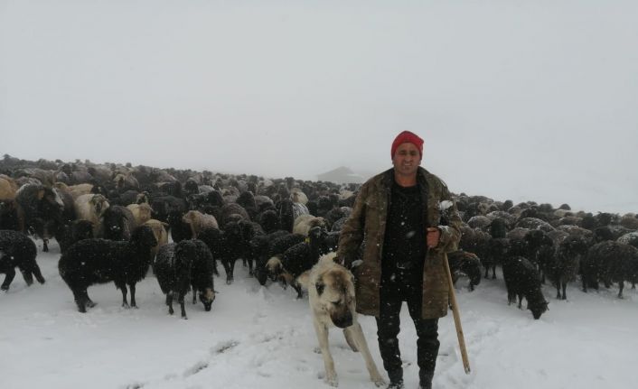 Artvin’in yüksek yaylalarına küçükbaş hayvanlarını otlatmak için göç eden sürü sahipleri Mayıs ayında kar yağınca kışlaya dönmek zorunda kaldılar. Bin 400 küçükbaş hayvanıyla köyün yolunu tutan Erkan Biçer, o anları cep telefonu kamerası ile kayda aldı.