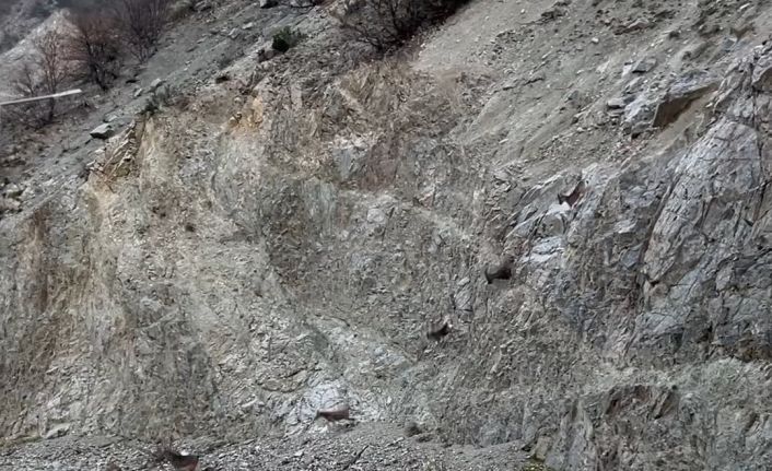 Artvin’de sarp ve yüksek kayalıklarda yaşamlarını sürdüren yaban keçileri sürü halinde görüntülendi.