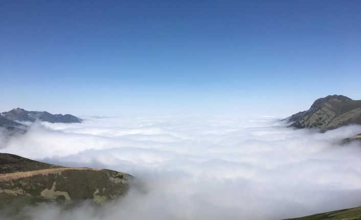 Artvin’in yaylalarında mevsim sıcaklıklarının değişim göstermesi nedeniyle oluşan sisi bulutları görsel şölen sunuyor. Artvin’in Yusufeli ilçesine bağlı Yüksekoba köyünün üzerinde bulutların görsel şovu görenleri kendine hayran bırakıyor. Yaylada hava sıcaklığının düşmesinin ardından oluşan sis bulutları seyrine doyum olmayan eşsiz manzaraları ortaya koydu. Adeta pamuktan denizini andıran görüntülerin güzelliği ziyaretçilerine tüm yorgunluğunu unuttururken, fotoğraf tutkunlarına ise seyrine doyulmaz bir manzara sunuyor.