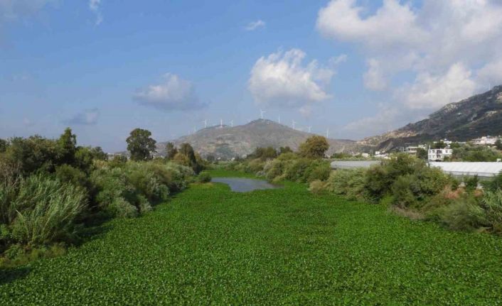 Hatay’ın Samandağ ilçesinde Asi Nehri’nde her yıl görülen istilacı su sümbülleri, bazı noktalarda nehri kapladı.