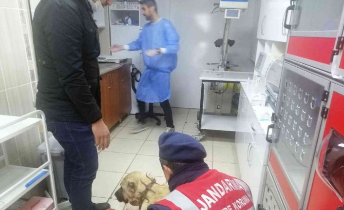 Tokat’ta av tüfeği ile vurulan kangal köpeği veteriner hekim tarafından tedaviye alındı.