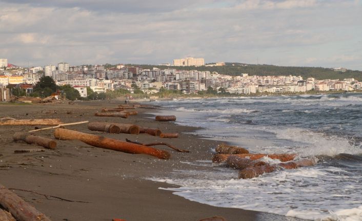 Sinop Ayancık’ta yaşanan sel felaketinde denize sürüklenen tomruklar Samsun sahiline vurmaya devam ediyor. 200 km sürüklenen dev tomruklardan onlarcası Samsun’un Atakum ilçesi sahillerine ulaştı.